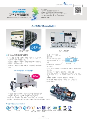 •R-134a 전용 압축기를 사용하여 고효율 운전과 CO2 배출량 억제, •30~700 usRT까지 다양한