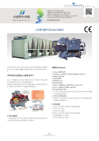 스크류 냉동기는 공조기 또는 팬코일과 연결하여 일반 건물은 물론 산업 • SCSR(분리형) : 30~240HP