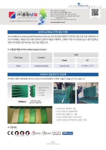 ■ 인증받은제품 (AHRI Certified Coil specification)
