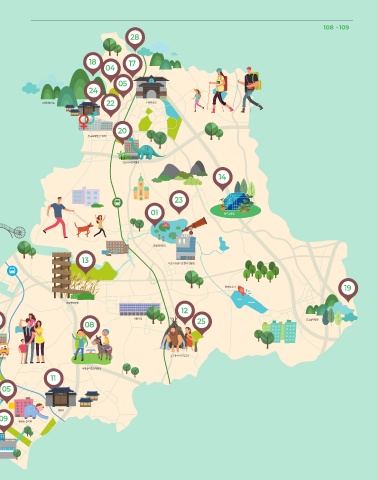 2021년 공동육아나눔터사업 자녀돌봄품앗이 사례집 | 함께여서 더 행복한 우리 108 109 28 18 17 04 05 24 22 소래산놀자숲 소전미술관 20 성교육체험관 ‘뭐야’ 창조사자연박물관 14 23 01 용도수목원 연꽃테마파크 13 시흥시 농업기술센터 천문관 물왕저수지 19 갯골생태공원 12 02 08 시흥시청 25 조남숲체험장 능곡동선사유적공원 어린이안전체험관 시흥승마힐링체험장 11 05 시흥소방서 생금집 09 숨쉬는 놀이터