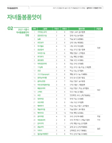 02 2021 시흥시 연번 그룹명 가정수 회원수 활동내용 관할동