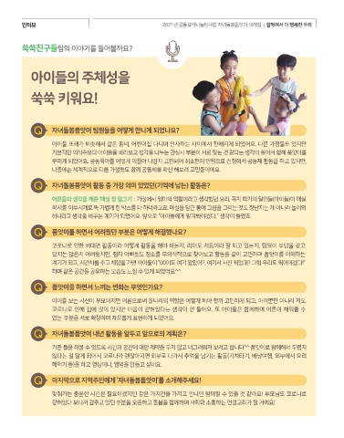 인터뷰 2021년 공동육아나눔터사업 자녀돌봄품앗이 사례집 | 함께여서 더 행복한 우리 26 27