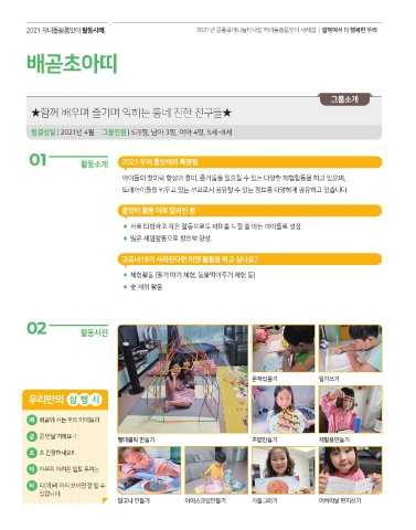 2021 자녀돌봄품앗이 활동사례 2021년 공동육아나눔터사업 자녀돌봄품앗이 사례집 | 함께여서 더 행복한 우리 46 47