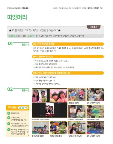 2021 자녀돌봄품앗이 활동사례 2021년 공동육아나눔터사업 자녀돌봄품앗이 사례집 | 함께여서 더 행복한 우리 66 67