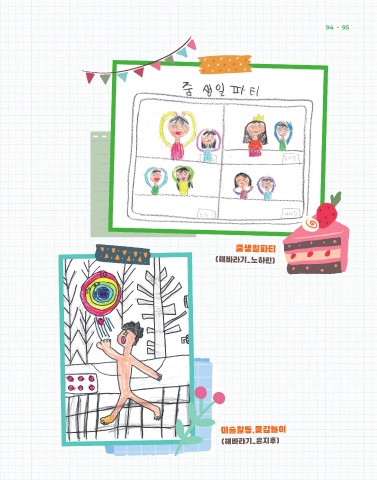 2021년 공동육아나눔터사업 자녀돌봄품앗이 사례집 | 함께여서 더 행복한 우리 94 95 줌생일파티 (해바라기_노하린) 미술활동,물감놀이 (해바라기_윤지후)