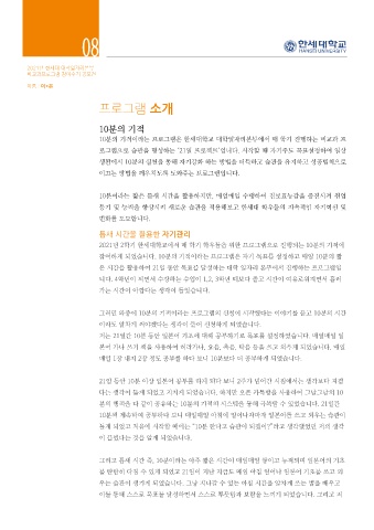 2021년 2학기 한세대학교에서 매 학기 학우들을 위한 프로그램으로 진행되는 10분의 기적에