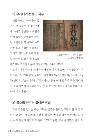 그 조리 방법이 기록되어 있다. 이들 문헌에 기록된 국수의 종류는 총