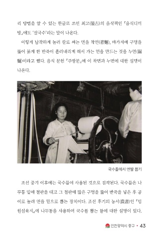원십육지』에 나무통을 사용하여 국수를 뽑는 틀에 대한 설명이 있다.