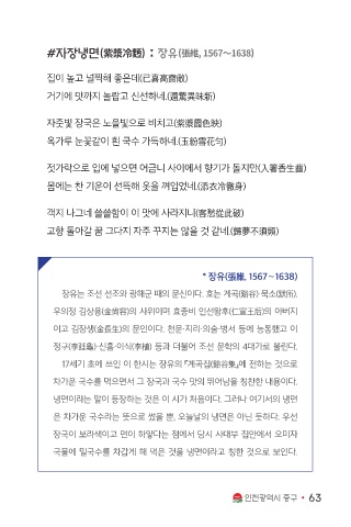 장유는 조선 선조와 광해군 때의 문신이다. 호는 계곡(谿谷)·묵소(默所).