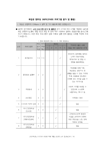 취업생 멘토링 3회차(교내외 프로그램 참가 및 활동) ■ COMpass K에 등록되어 있지 않지만 본인이 참여하였던 교내 프로그램 중 본인의 취업에 도
