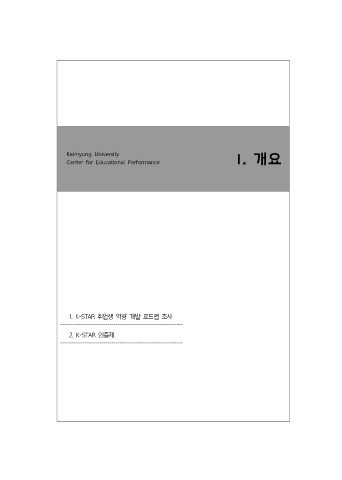 Keimyung University Center for Educational Performance Ⅰ. 개요 1. K-STAR 취업생 역량 개발 로드맵 조사 2. K-STAR 인증제