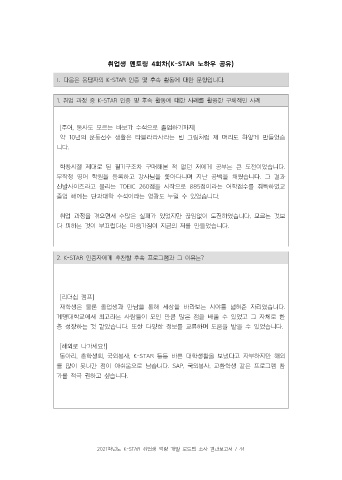 1. 취업 과정 중 K-STAR 인증 및 후속 활동에 대한 사례를 활용한 구체적인 사례