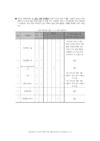 2021학년도 K-STAR 취업생 역량 개발 로드맵 조사 결과보고서 / 56 2021학년도 K-STAR 취업생 역량 개발 로드맵 조사 결과보고서 / 57