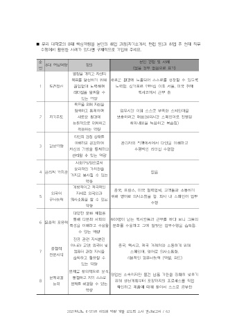 2021학년도 K-STAR 취업생 역량 개발 로드맵 조사 결과보고서 / 62 2021학년도 K-STAR 취업생 역량 개발 로드맵 조사 결과보고서 / 63
