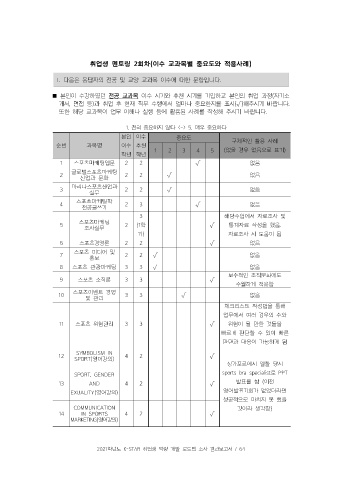 1 스포츠마케팅입문 2 2 √ 없음 2 디자인의 이해 2 1 √ 없음