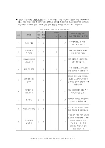 ■ 본인이 수강하였던 교양 교과목 이수 시기와 추천 시기를 기입하고 본인의 취업 과정(자기소