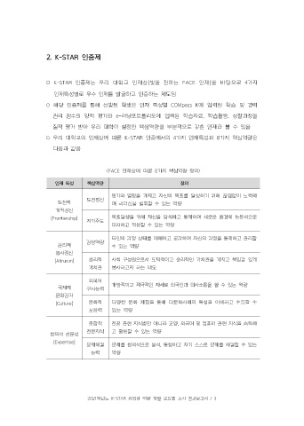 1 2019 A, C 권도현 카펙발레오 ○ K-STAR 인증제는 우리 대학교 인재상(빛을 전하는 FACE 인재)을 바탕으로 4가지