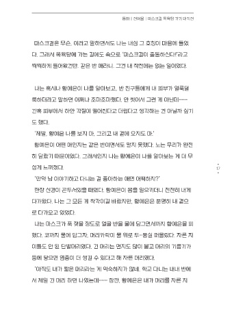 “수아야, 요즘은 코로나 때문에 목욕탕에서도 마스크를 다 쓰고 다닌대. 다가왔다. 나는 그 모든 게 착각이길 바랐지만, 황예은은 분명히 내 곁으