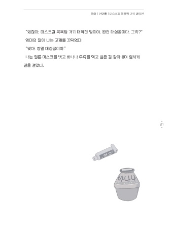 “저기 이거 집 가서 마셔. 이젠 여기서 못 마시니까.” 나는 얼른 마스크를 벗고 바나나 우유를 먹고 싶은 걸 참아내며 힘차게