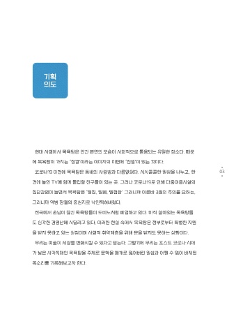 기획의도 03 현대 사회에서 목욕탕은 인간 본연의 모습이 사회적으로 통용되는 유일한 장소다. 때문