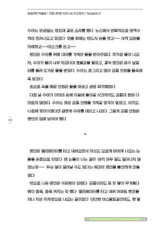 수아는 뜬금없는 잠꼬대 같은 소리를 했다. 뉴스에서 반복적으로 방역수 한 발 디딜 때마다 땅 속으로 빨려 들어갈 듯 했다. 어떻게 택시가 서는 도