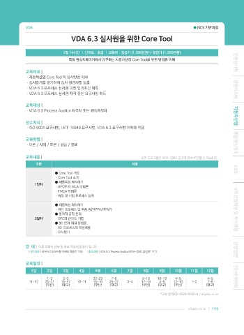 | 선수과정 | VDA 6.3 요구사항 이해와 적용(P.115) | 후속과정 | VDA 6.3 Process Auditor(VDA-QMC 승인)(P.112) 경영일반