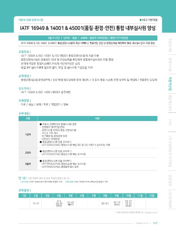 | 선수과정 | IATF 16949 요구사항 이해와 적용(P.123) | 후속과정 | IATF 16949:2016 내부심사원 양성(P.125) 경영일반