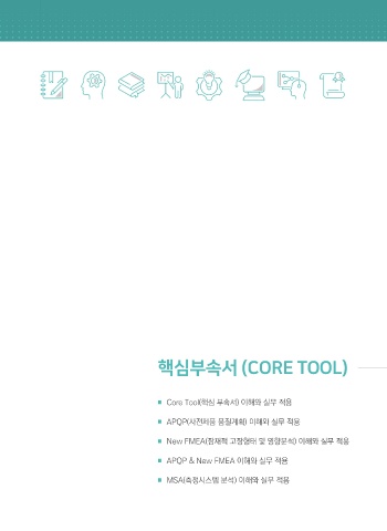 03 경영시스템 핵심부속서 (CORE TOOL) 䞻 Core Tool(핵심 부속서) 이해와 실무 적용 䞻 APQP(사전제품 품질계획) 이해와 실무 적용 KOREAN 䞻 New FMEA(잠재적 고장형태 및 영향분석) 이해와 실무 적용 FOUNDATION FOR 䞻 APQP & New FMEA 이해와 실무 적용 QUALITY 䞻 MSA(측정시스템 분석) 이해와 실무 적용