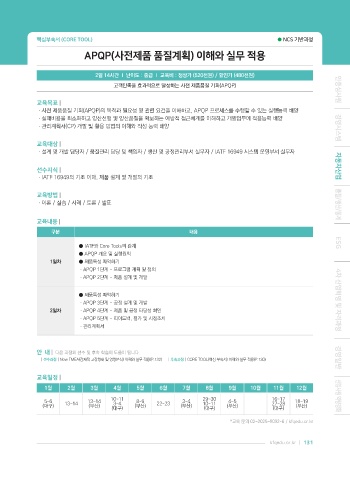 ㆍ사전 제품품질 기획(APQP)의 목적과 필요성 및 관련 요건을 이해하고, APQP 프로세스를 수행할 수 있는 실행능력 배양