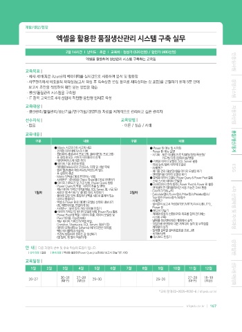 | 선수과정 | 없음 | 후속과정 | 엑셀을 활용한(Power Query) 품질생산 보고서 만들기(P.166)