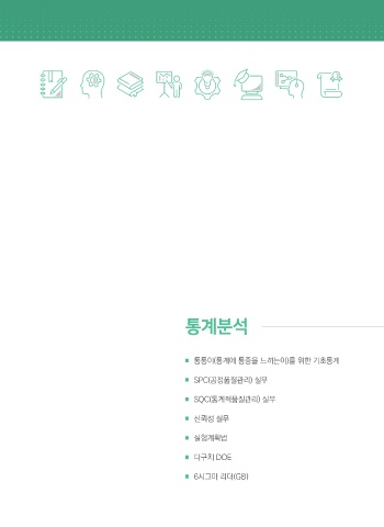 04 품질/생산/통계 통계분석 䞻 통통이(통계에 통증을 느끼는이)를 위한 기초통계 䞻 SPC(공정품질관리) 실무 䞻 SQC(통계적품질관리) 실무 䞻 신뢰성 실무 KOREAN 䞻 실험계획법 FOUNDATION FOR 䞻 다구치 DOE QUALITY 䞻 6시그마 리더(GB)