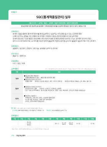 교육내용 | ※각 수행 업무에 있어서 통계적 품질관리 역량을 강화시키기 위한 직무 수행 능력 중심의 교육