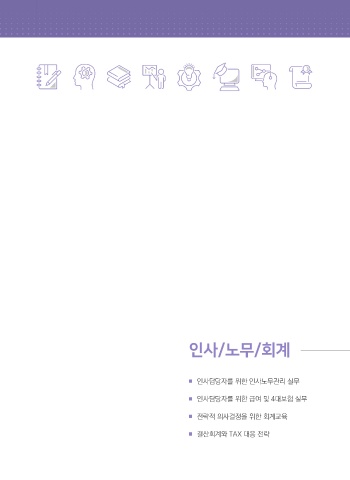 07 경영일반 인사/노무/회계 䞻 인사담당자를 위한 인사노무관리 실무 KOREAN 䞻 인사담당자를 위한 급여 및 4대보험 실무 FOUNDATION FOR 䞻 전략적 의사결정을 위한 회계교육 QUALITY 䞻 결산회계와 TAX 대응 전략