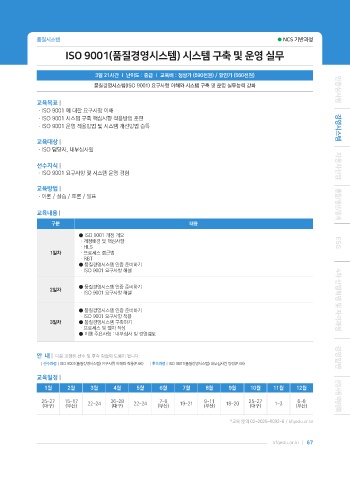 | 선수과정 | ISO 9001(품질경영시스템) 요구사항 이해와 적용(P.66) | 후속과정 | ISO 9001(품질경영시스템) 내부심사원 양성(P.68)