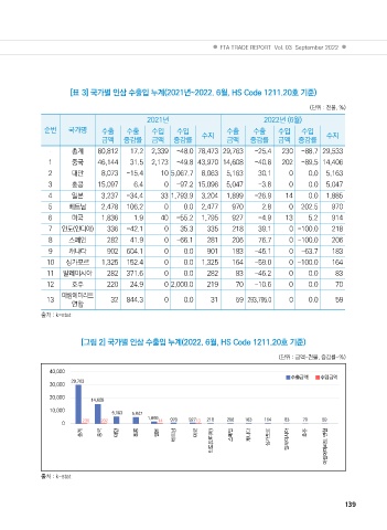 [표 3] 국가별 인삼 수출입 누계(2021년~2022. 6월, HS Code 1211.20호 기준)