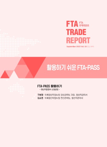 FTA 무역리포트 September 2022 Vol. 03 (통권 39호) 활용하기 쉬운 FTA-PASS FTA-PASS 활용하기 - 원산지증명서 신청방법 - 구본현 국제원산지정보원 전산관리팀 과장, 원산지관리사 김소연 국제원산지정보원 전산관리팀, 원산지관리사