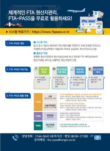 상담전화 : 1544-0645 (문의시간 : 평일 08:00~17:00) 문의메일 : fta-pass@origin.or.kr