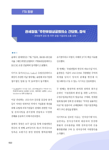 - 관세정책 공유 등 주한 유럽 기업과의 소통 강화 -