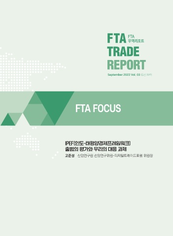 FTA 무역리포트 September 2022 Vol. 03 (통권 39호) FTA FOCUS IPEF(인도-태평양경제프레임워크) 출범의 평가와 우리의 대응 과제 고준성 산업연구원 선임연구위원・디지털트레이드포럼 위원장