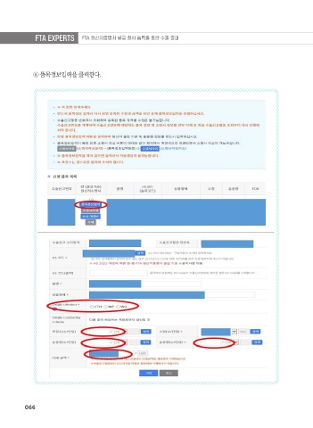 FTA EXPERTS FTA 원산지증명서 발급 절차 습득을 통한 수출 증대 ⑥ 품목정보입력을 클릭한다. 066