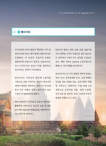 우리나라와 FTA의 발효가 예상되는 국가 중 캄보디아 정부는 성장, 고용, 공평, 효율이란