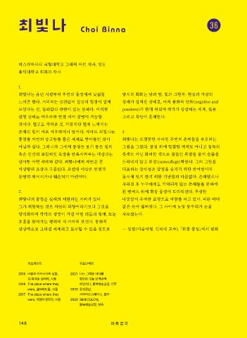상이한 어떤 세계와 같다. 최빛나에게 자연은 곧 드러내지 않고 위장(camouflage)하였다. 그의 그림을