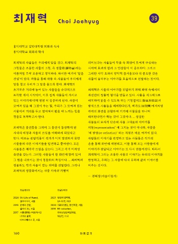 그 힘을 내보이는 것이 정물화의 특징이다. ... 최재혁의 반영하고, 우리는 그 사물에 다시 우리의 삶의 이야기를