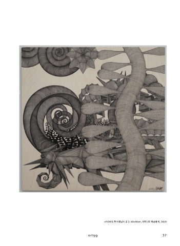 ‹오딧세이_한 여름낮의 꿈 2› 40x40cm, 자작나무 패널에 펜, 2020 artgg 37