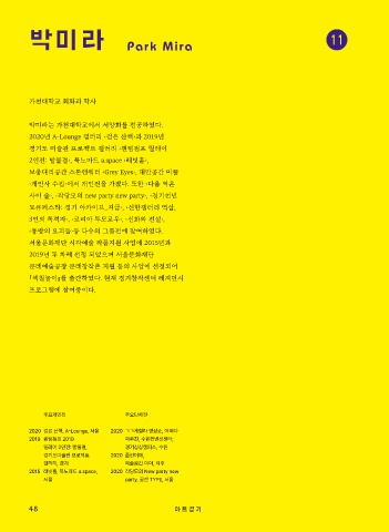 박미라는 가천대학교에서 서양화를 전공하였다.