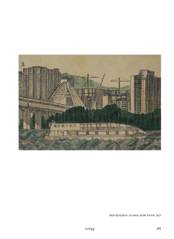 ‹한강유람(서강대교)› 20×30cm, 비단에 먹과 채색, 2021 artgg 85
