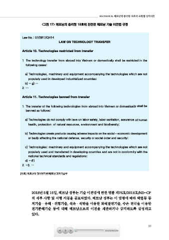 <그림 17> 베트남의 총리령 18호에 관련된 베트남 기술 이전법 규정