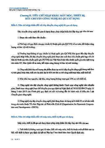 Chương II. TIÊU CHÍ NHẬP KHẨU MÁY MÓC, THIẾT BỊ,