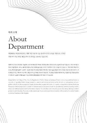 학원 교육을 통하여 , 우리는 빠르게 진화하는 패션 산업의 필요성을 인식하고 진보적인 디자인 교육을 하고 있습니다 . 계명 대학교 패션디자