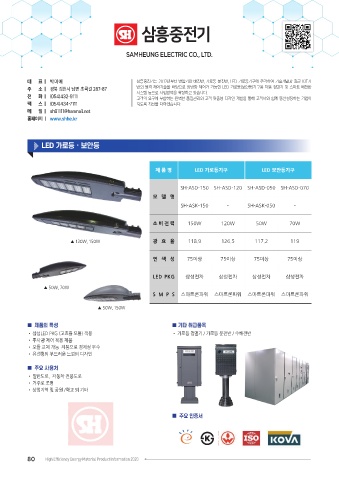 대 표 ㅣ 박 미 애 삼흥중전기는 2012년부터 변압기와 배전반, 가로등 분전반, LED 가로등기구에 주력하여 기술개발과 최근 IOT기